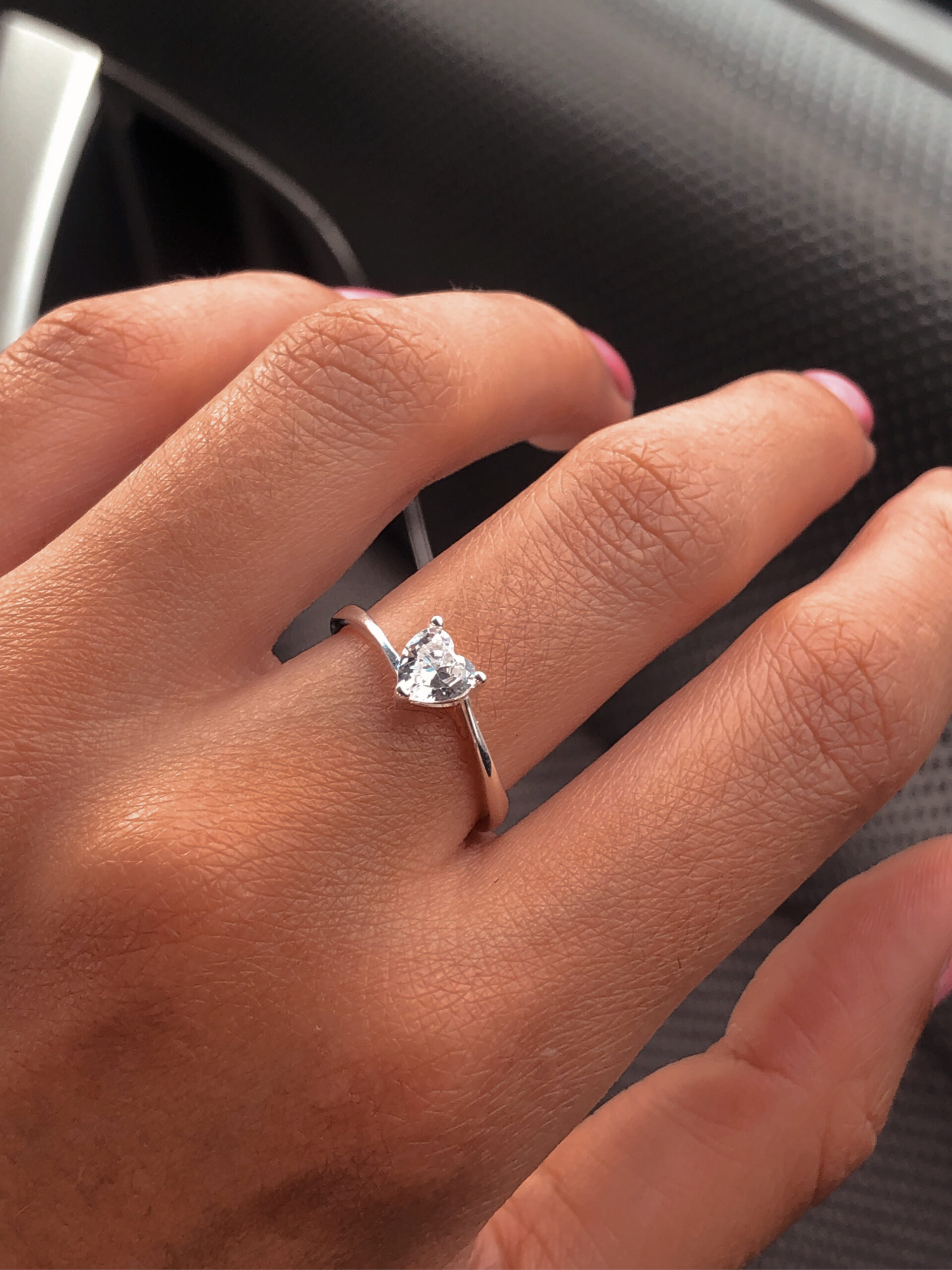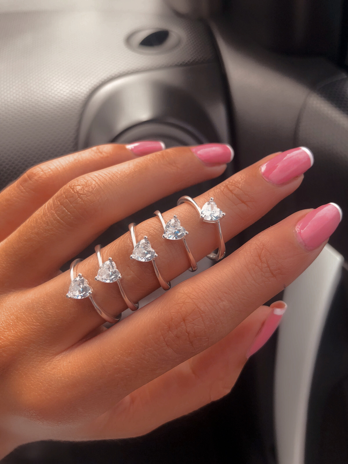 Anillo abierto con un hermoso zircòn en forma de corazón elaborado en plata 9.25.