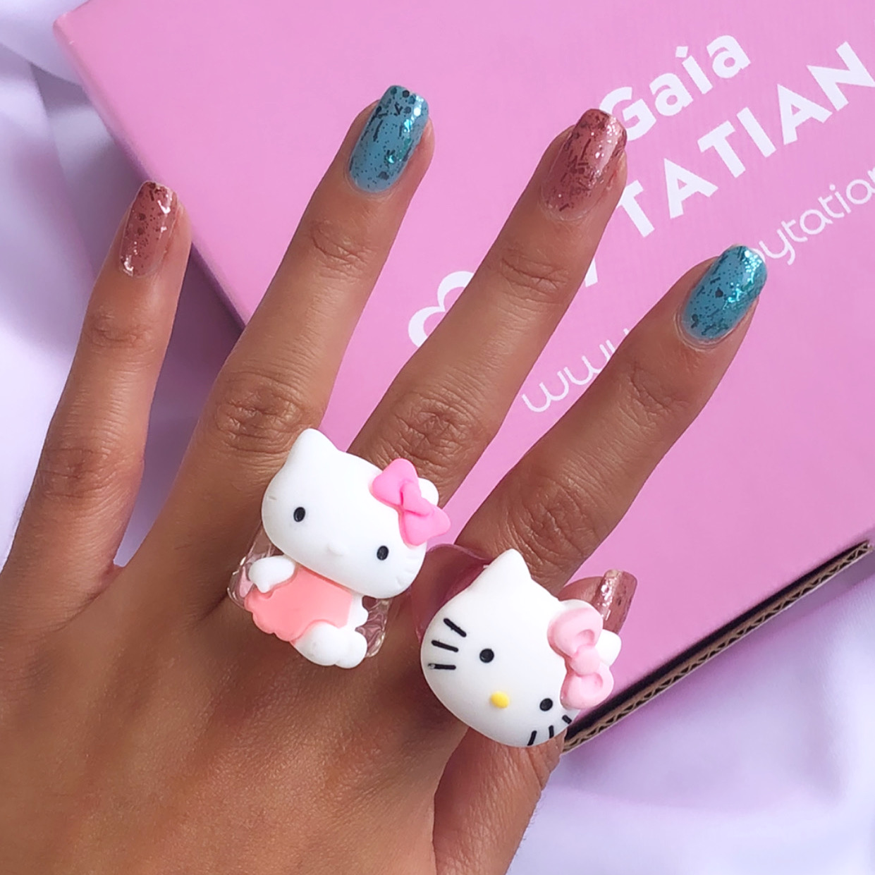 Anillo hello kitty elaborado en resina y acrílico talla única.