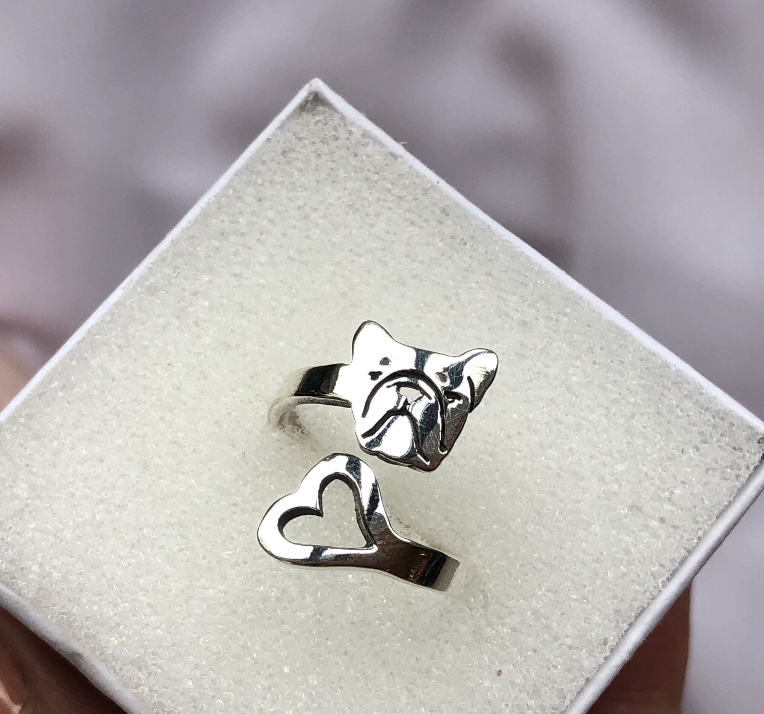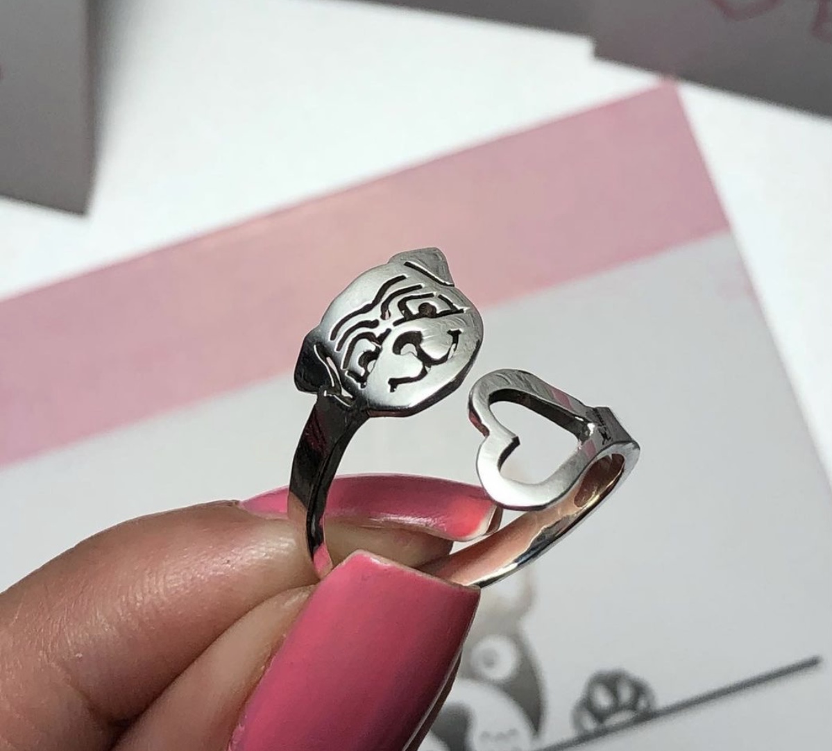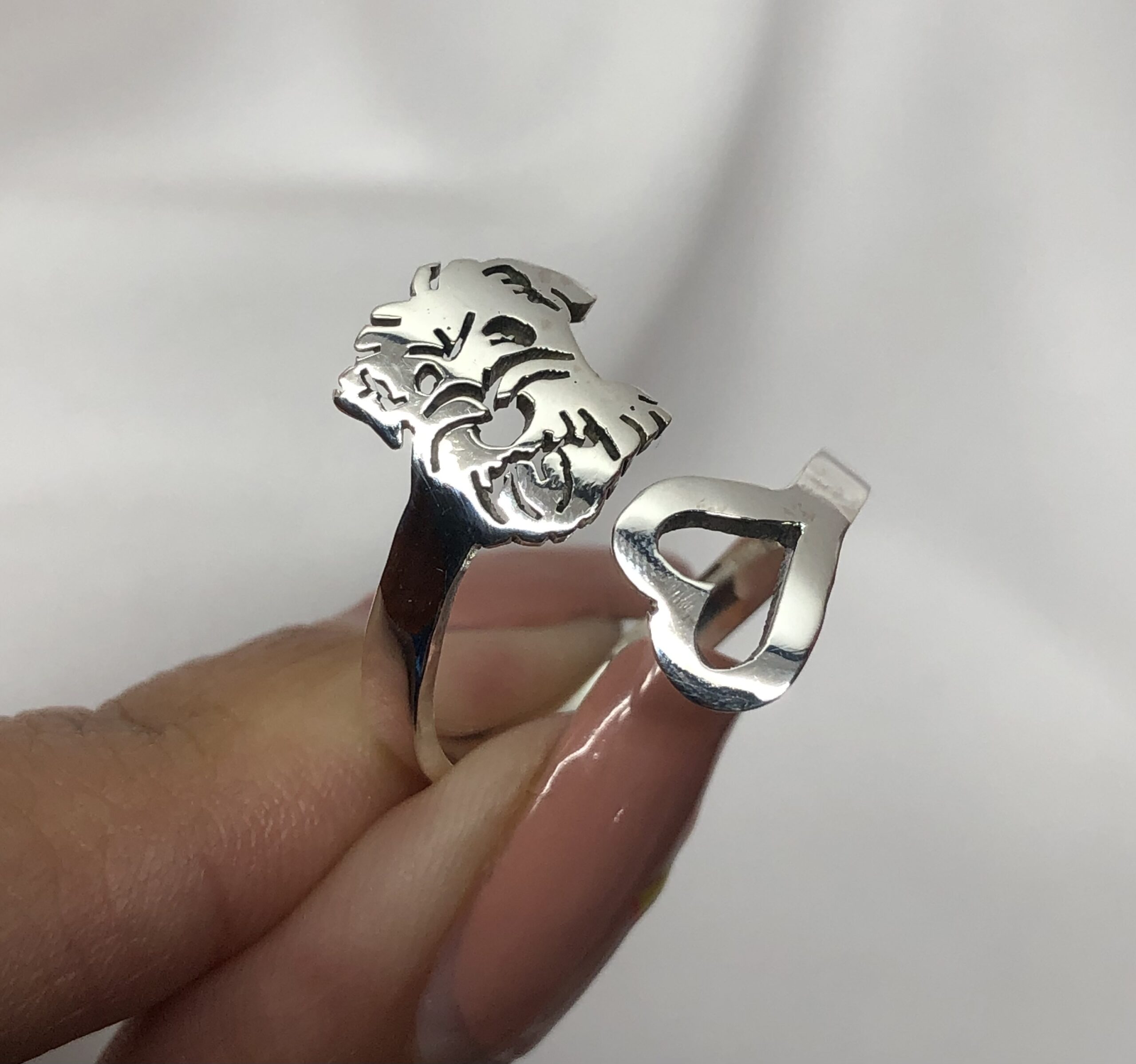 Anillo razas estándar cara y huella o cara y corazón llévalo como más te guste, joyas fabricadas en plata 9.25