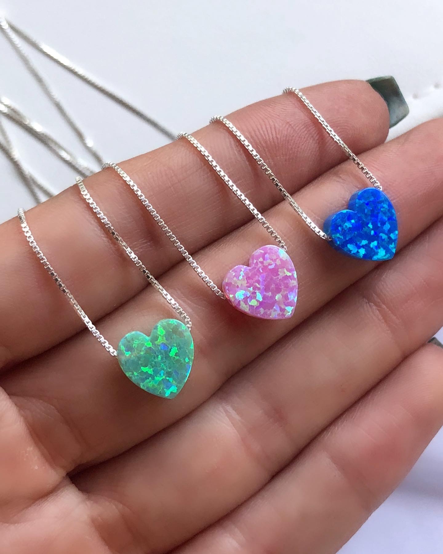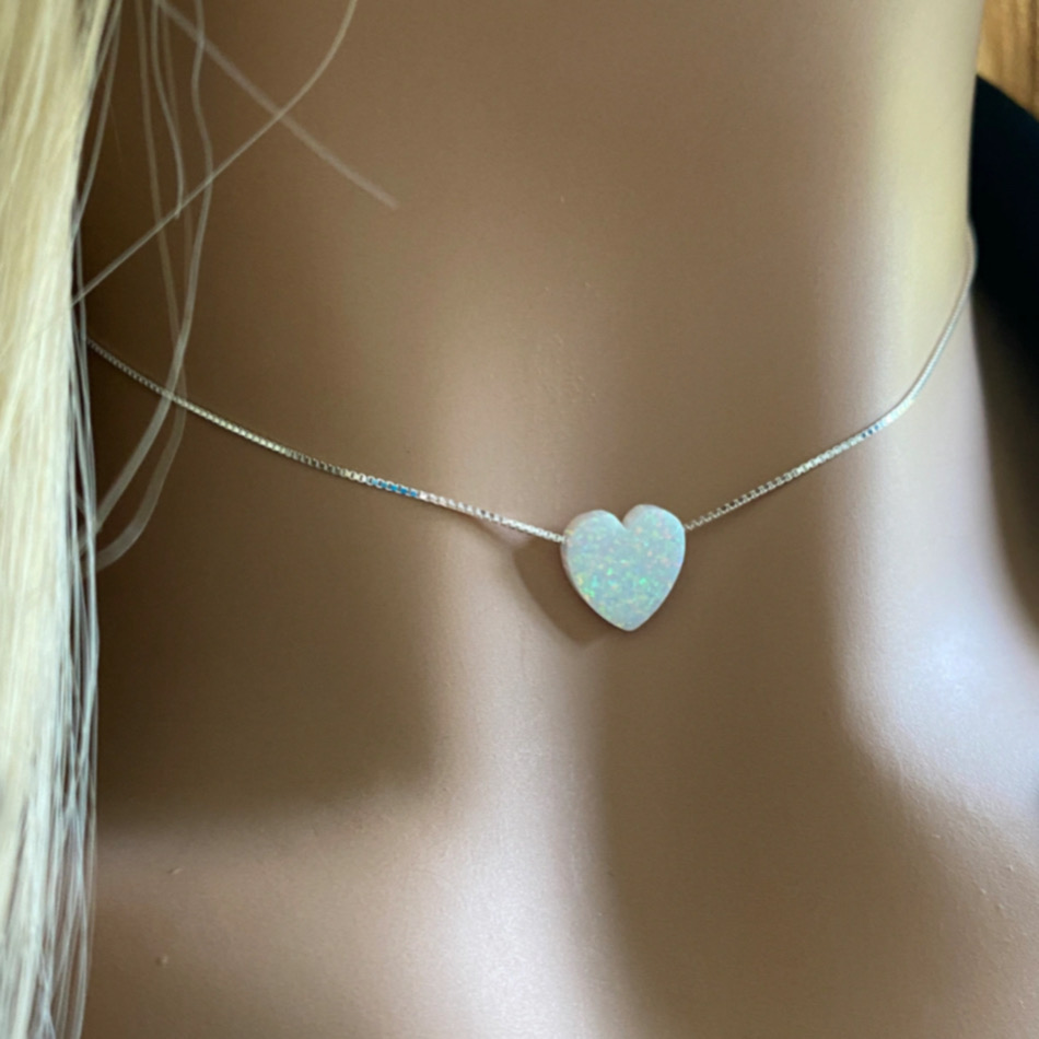 Cadena elaborada en plata 9.25 y piedra ópalo corazón.