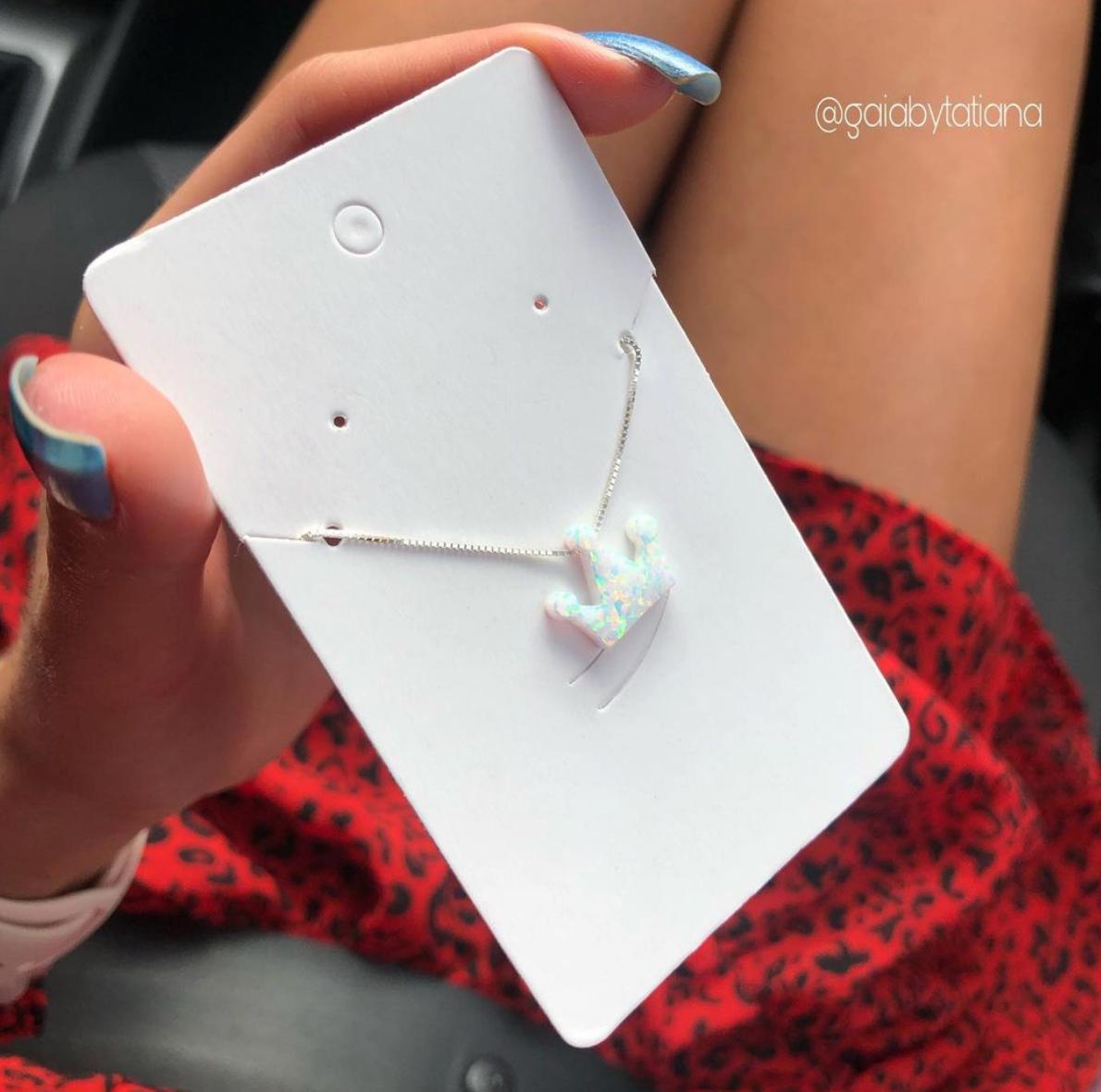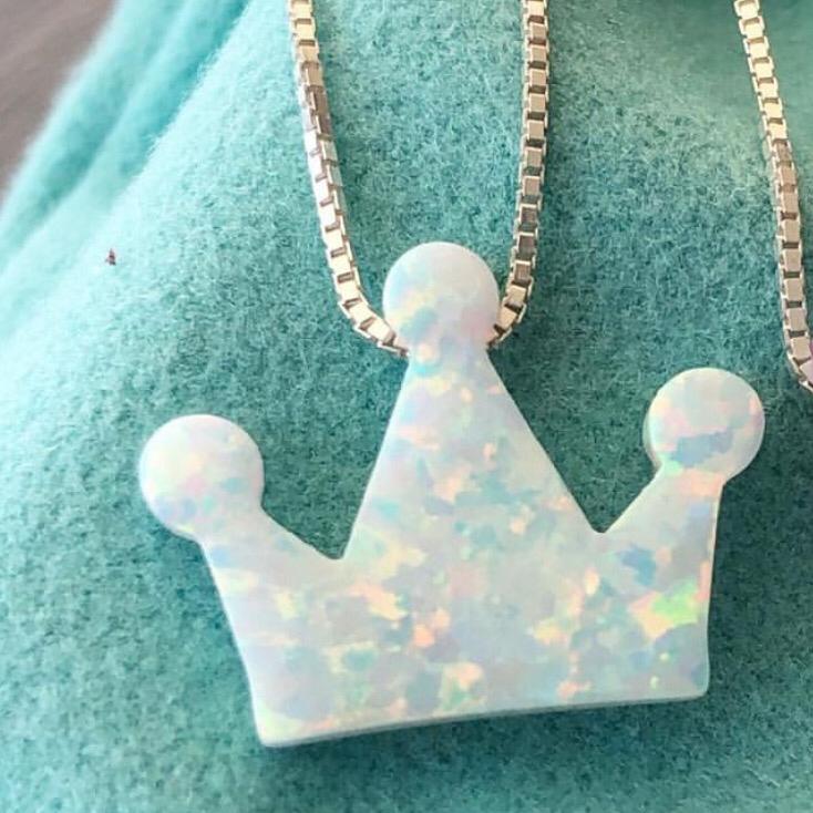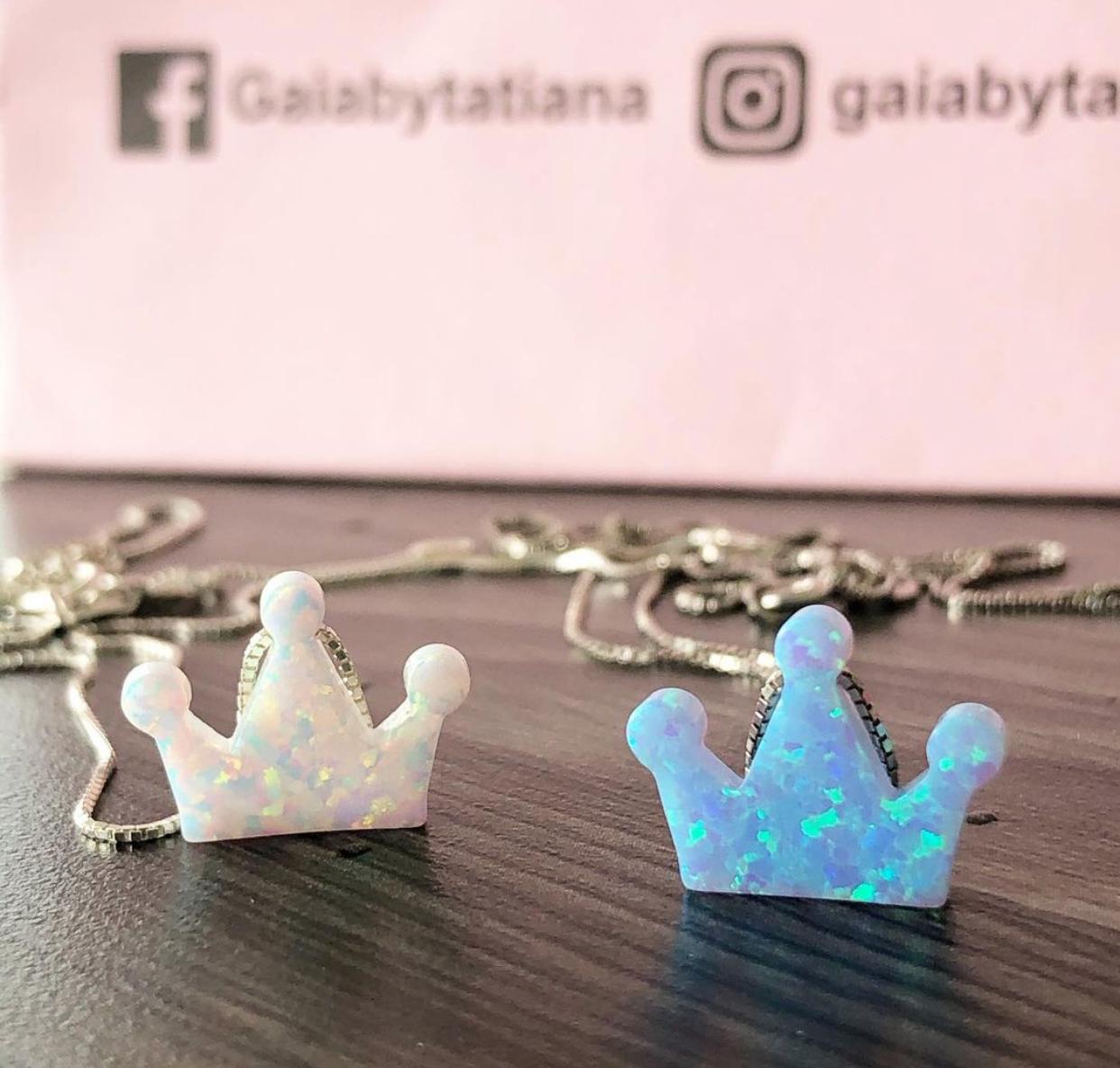 Cadena corona elaborada en plata 9.25 y piedra ópalo.