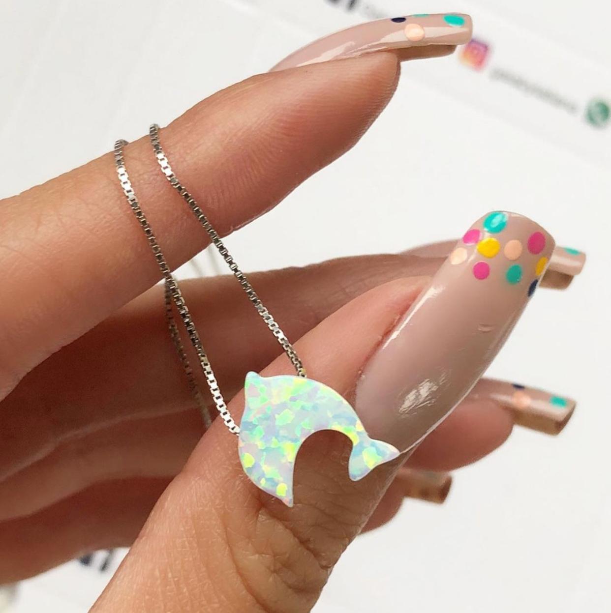 Cadena delfín elaborada en plata 9.25 y piedra ópalo.
