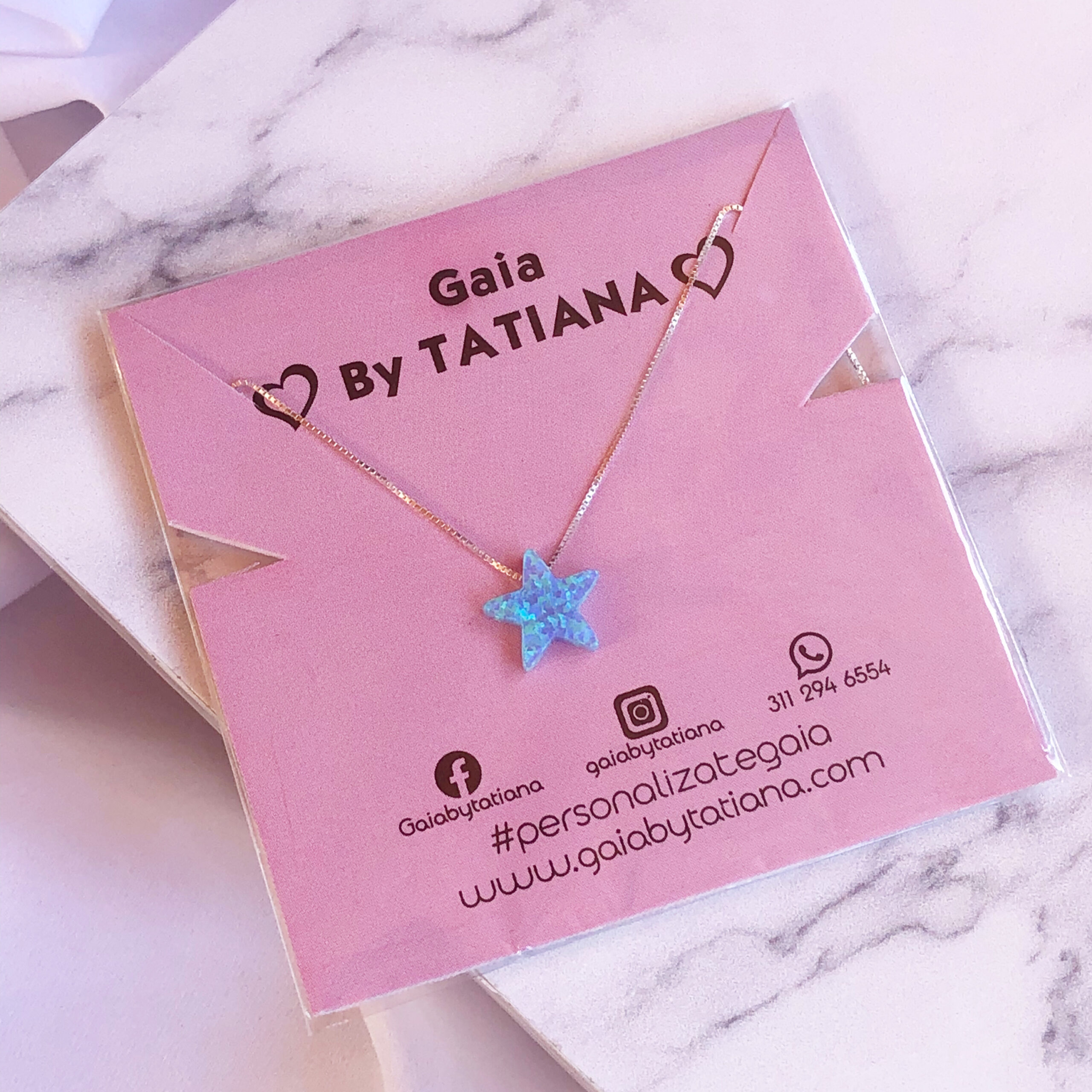Cadena elaborada en plata 9.25 con piedra ópalo.