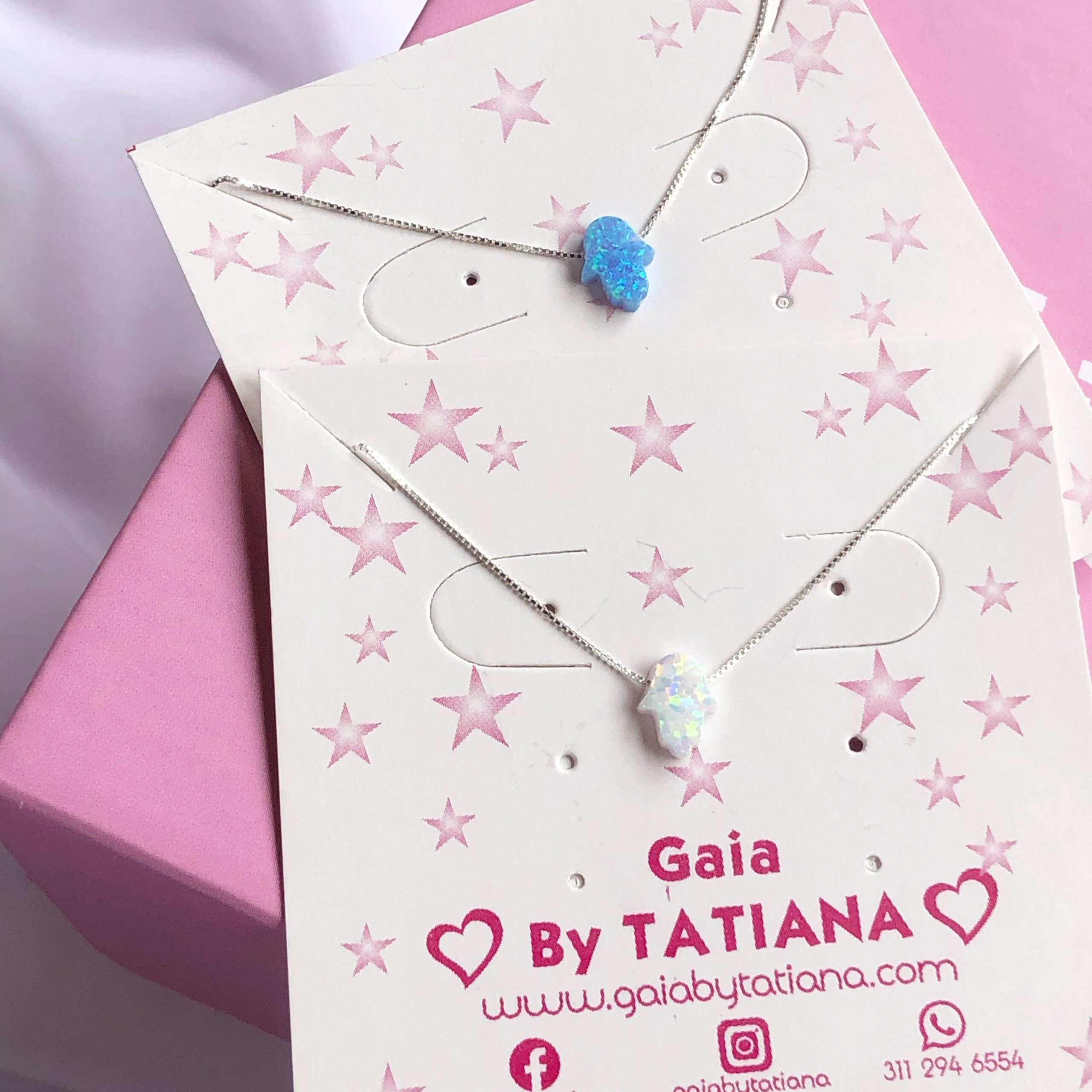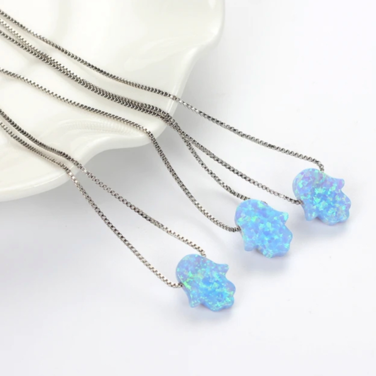 Cadena hamsa elaborada en plata 9.25 y piedra ópalo.