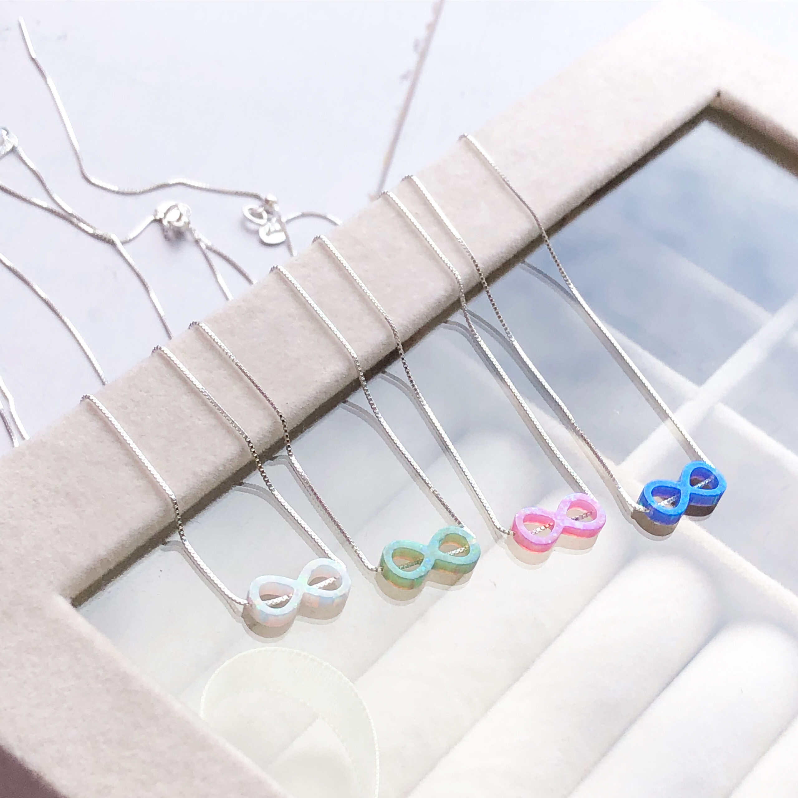 Cadena elaborada en plata 9.25 y piedra ópalo infinito