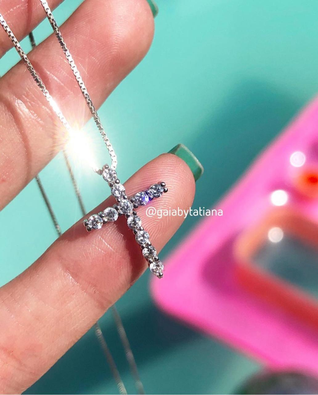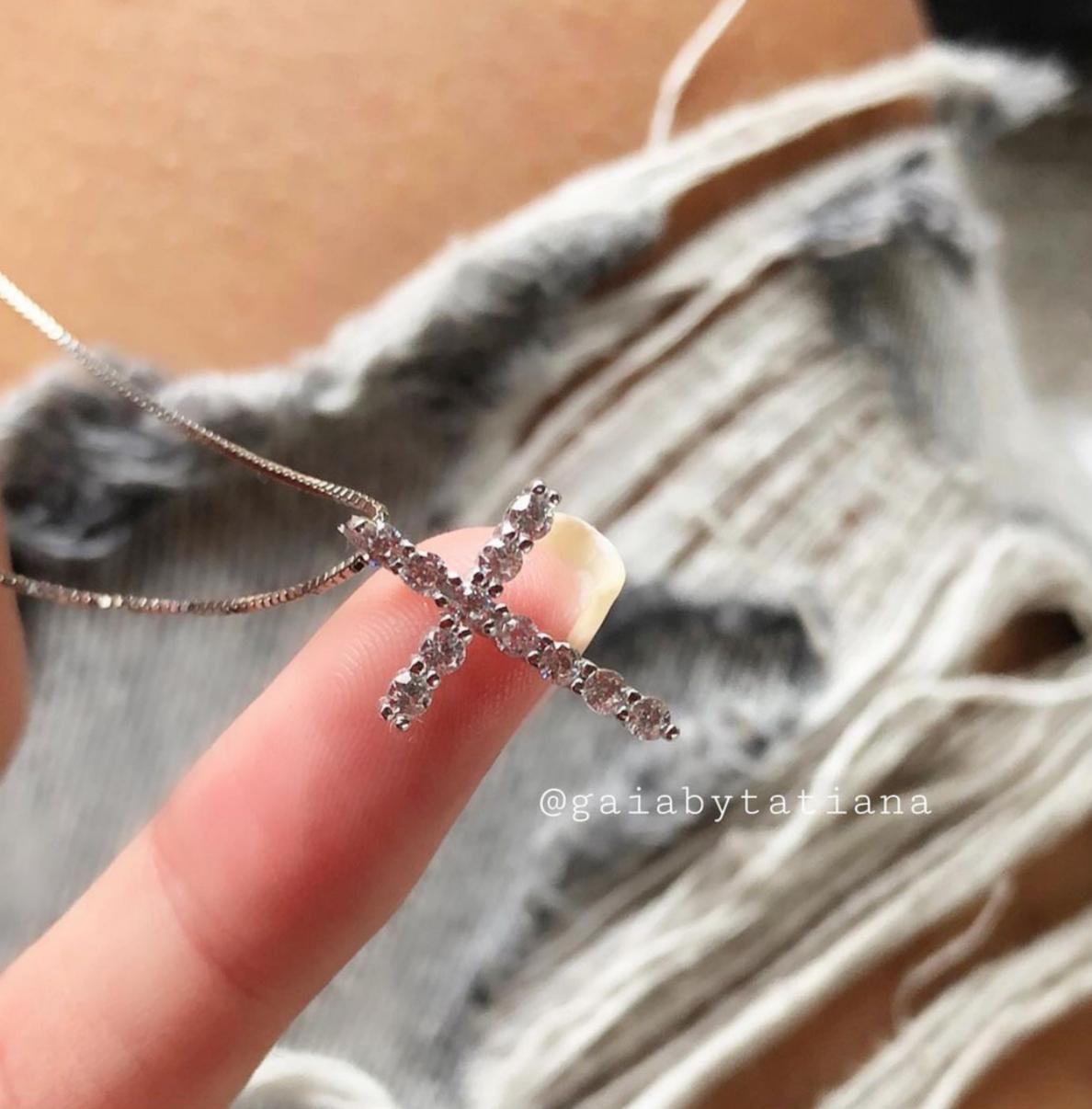 Cruz con circones grandes elaborada en plata 9.25