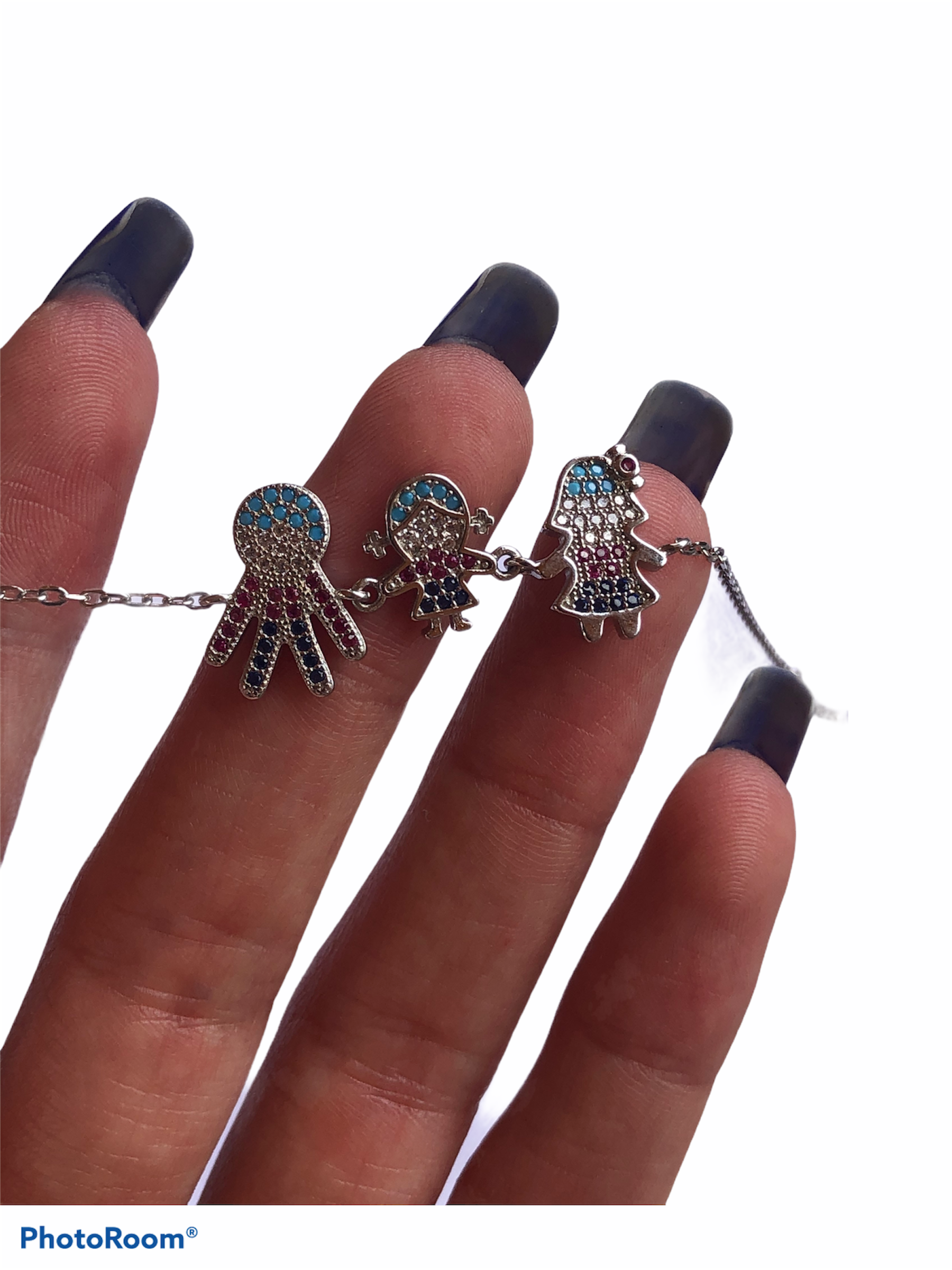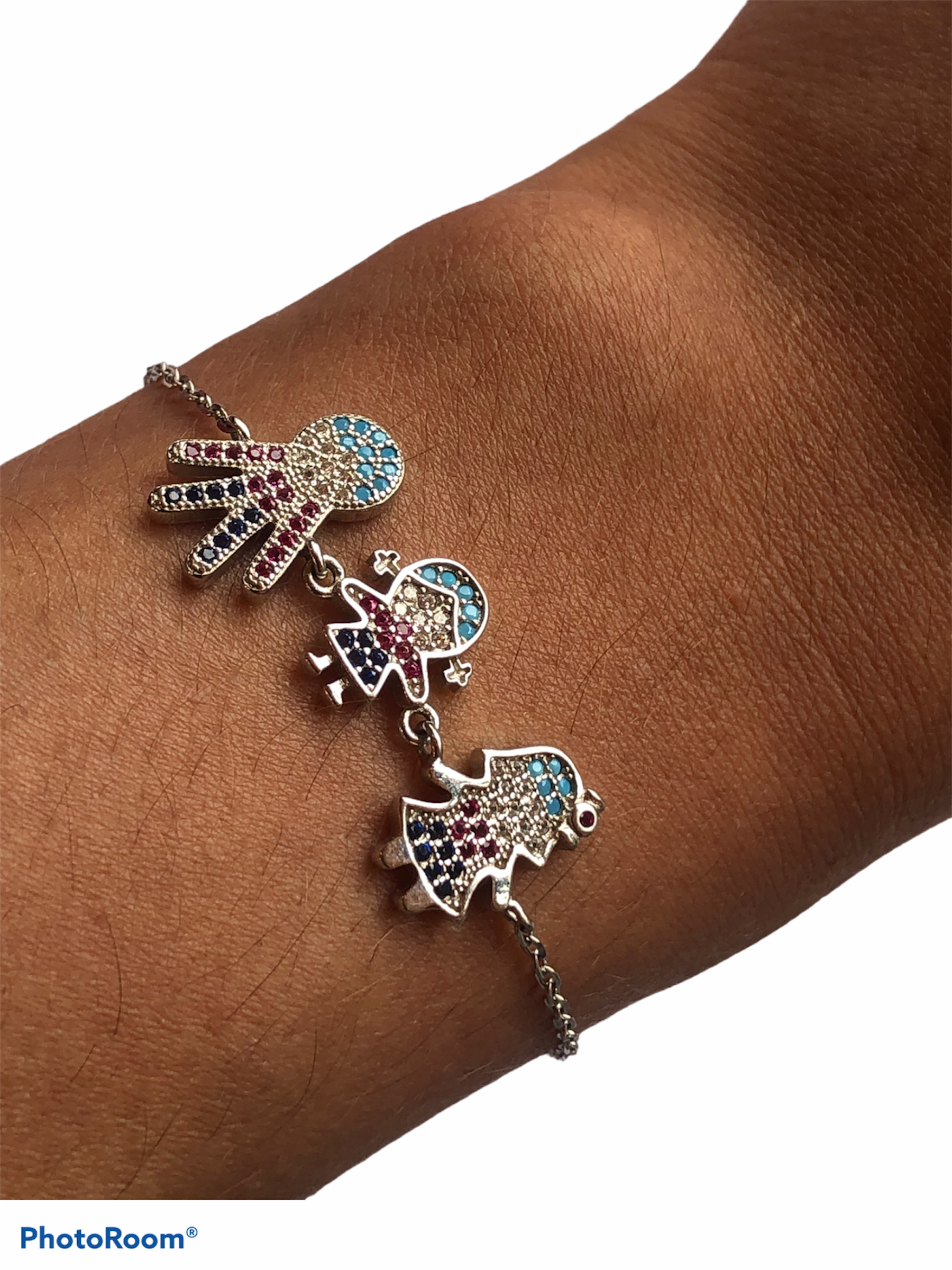 Pulsera elaborada en plata rodinada con circones de colores.