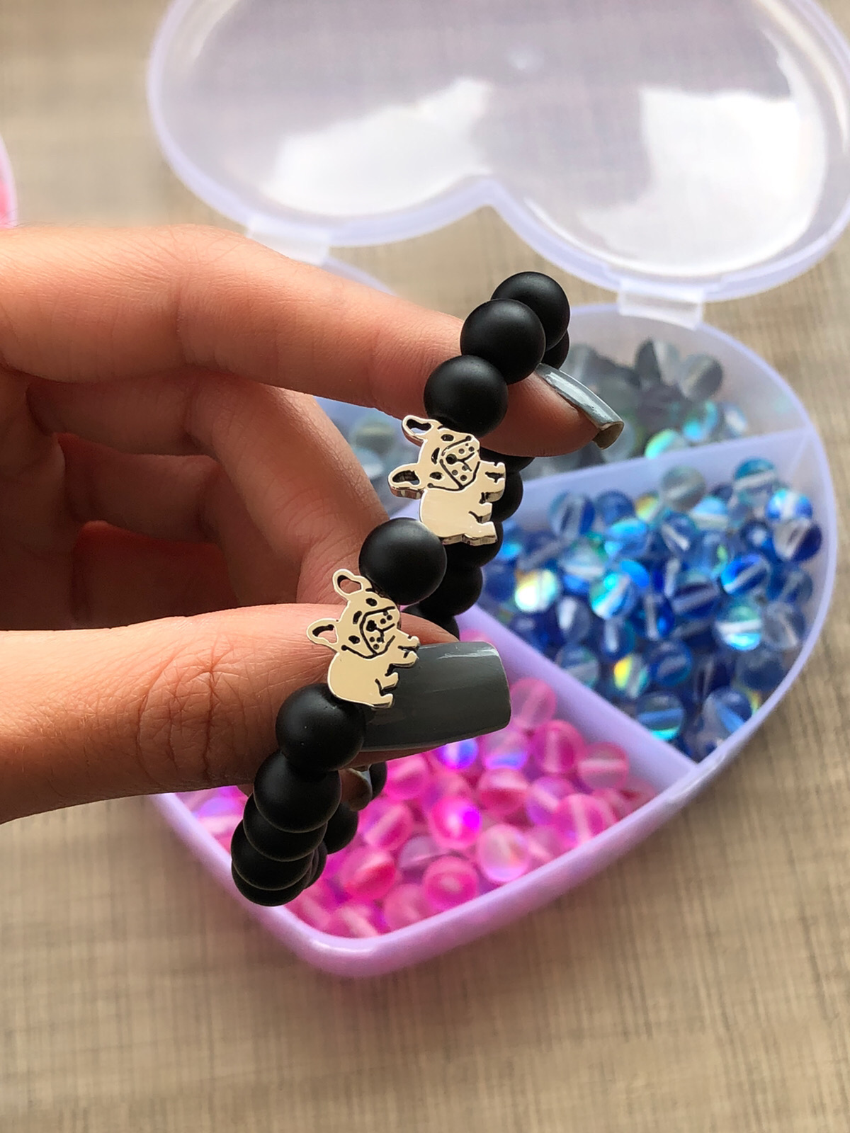 Pulsera elaborada en piedras volcánicas lisa y dijes 3D con balines en plata 9.25.