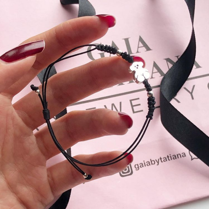 Hilo tejido a mano con Dije oso y balines en plata 9.25